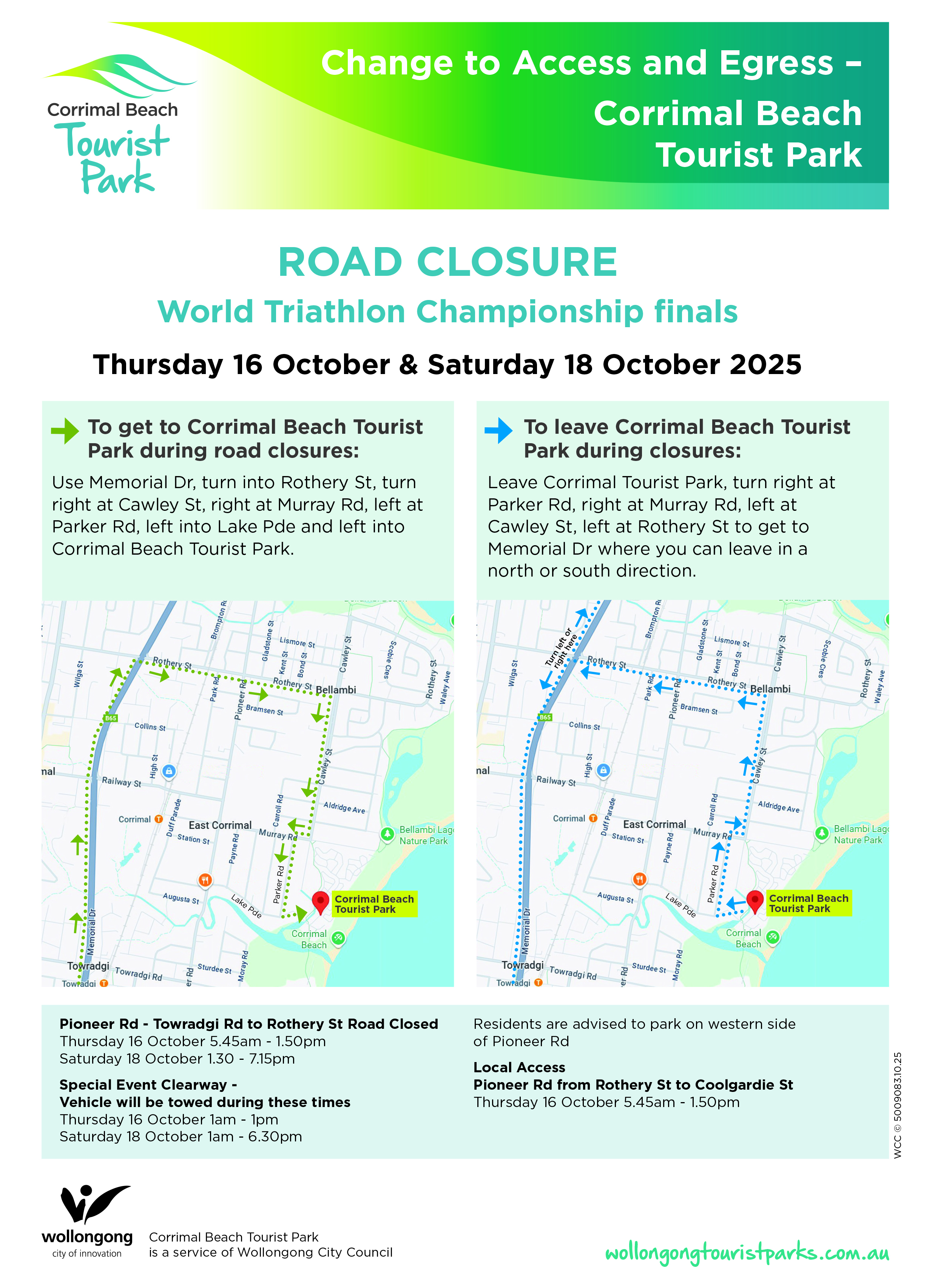 Need a doctor? East Corrimal Medical Centre website is just a few minutes’ walk away on Murray Road. Corrimal Town Centre also has several medical clinics, including bulk billing options. For emergencies, Wollongong Hospital is approximately 12 minutes’ drive from the Park and includes a 24 hour emergency department.